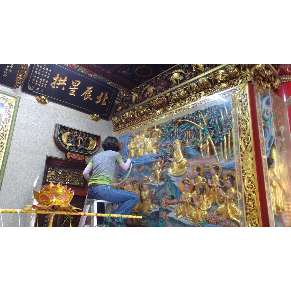 台南東區上帝廟 坐落於東區舊部落社區.經由前廳電線管路白蟻入侵到後廳破壞導致木雕神像破壞.屬於嚴重破壞程度.導致廟方木雕藝術品損失慘重..