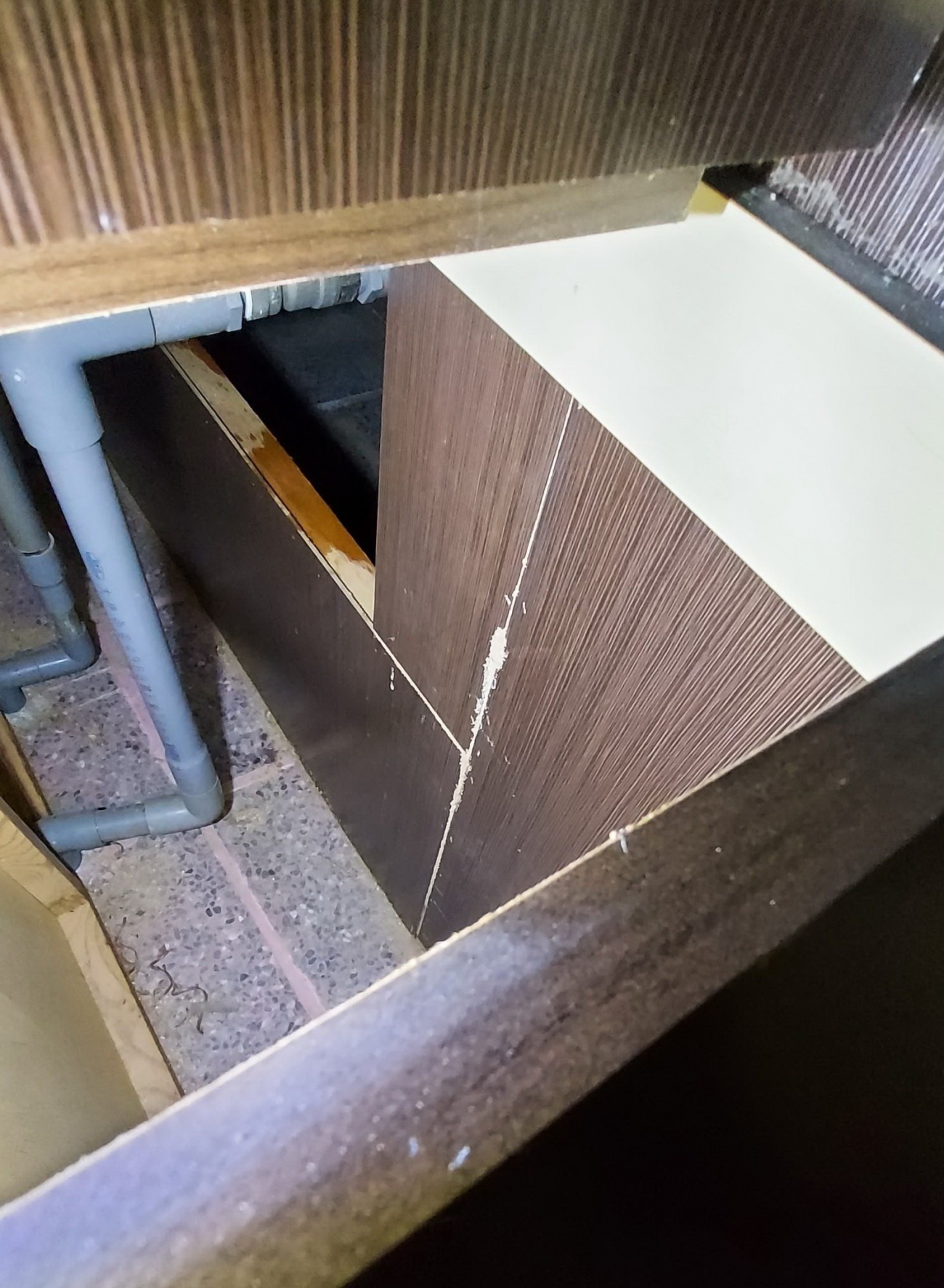 區域醫院大型會議室.除白蟻經由上下樓層水泥縫隙管路交叉入侵破壞.不容小看白蟻破壞力及穿透性.台南除白蟻推薦.除白蟻