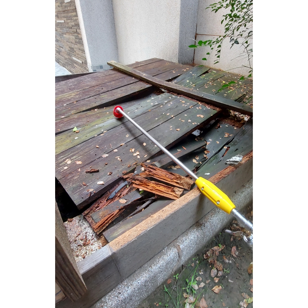 玄空法寺香客房間白蟻除除蟲 此案例為前一家除蟲公司未依照標準的灌注施工及標準間距灌注導致復發不可收拾.且導致破壞嚴重.
