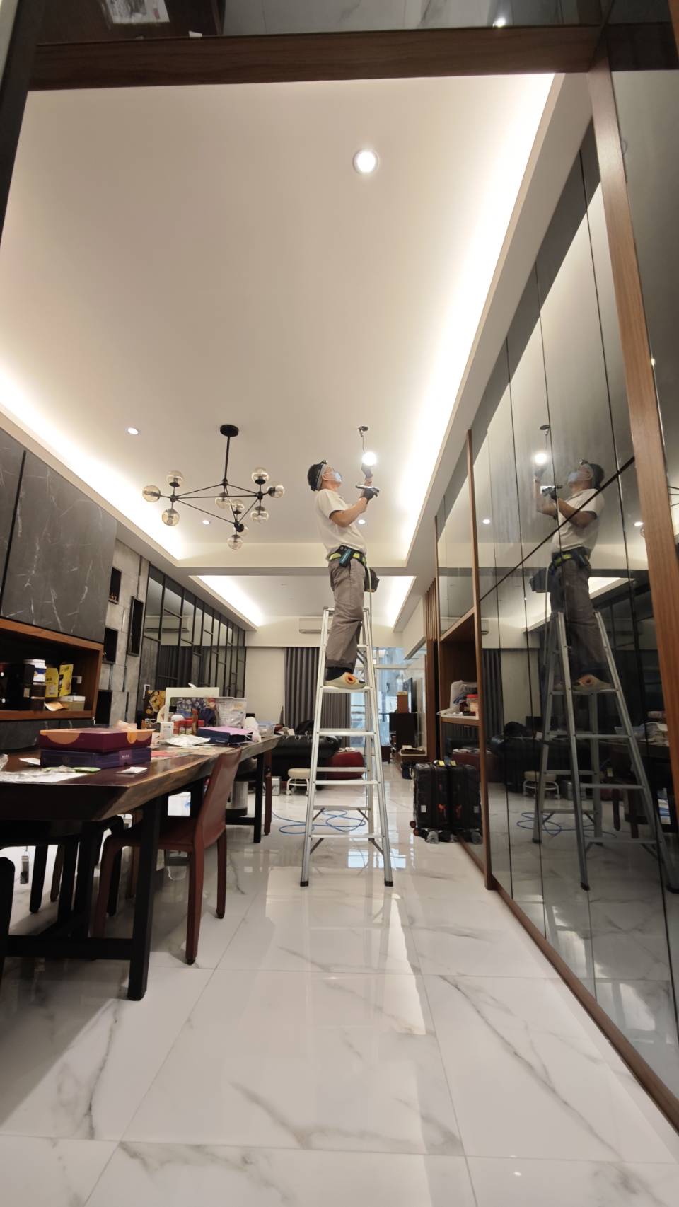 針對白蟻的施工方式我們依照現場的狀況材質區分一下施工方式,施工的狀況都是會依照現場的材質做滾動式的調整以期達到最佳的防護消滅的能力效果。第一種針對木板夾層,、木地板、木窗框、等等木質物品裝潢家具,我們會使用0.2公分鑽孔將高壓的方式把藥劑注入並滲透在組織裡面,變使用本公司特製360度全方向性針頭擴散性將藥劑高壓注入,為確保完整性我們的施工每個間距是30至45公分一個間距距離。