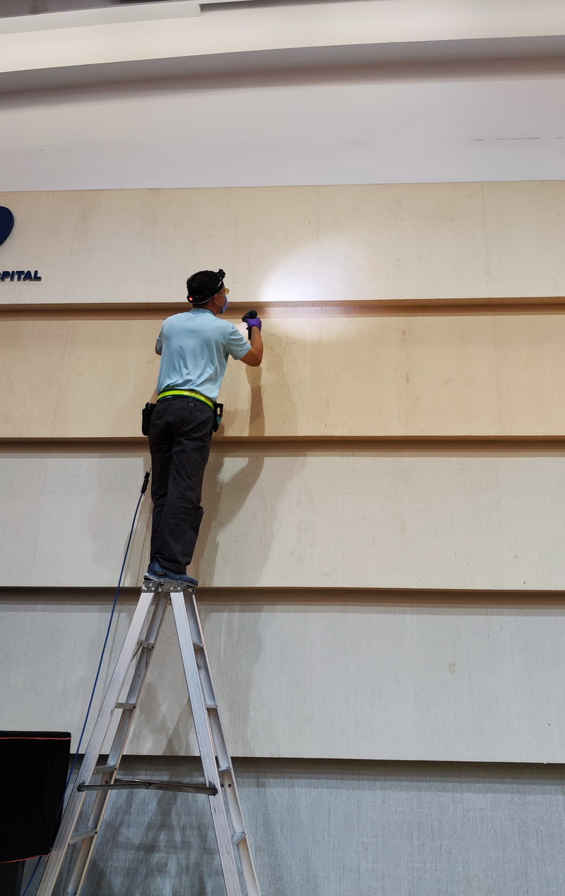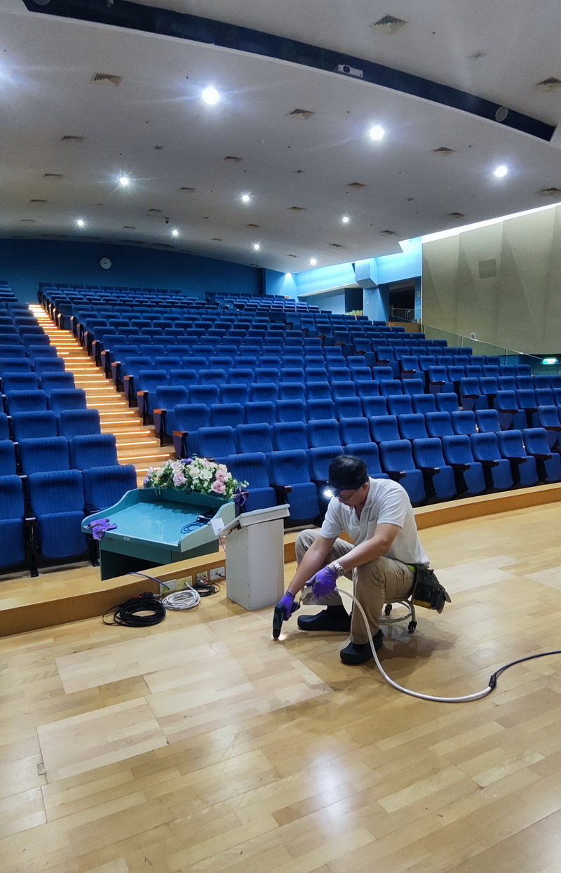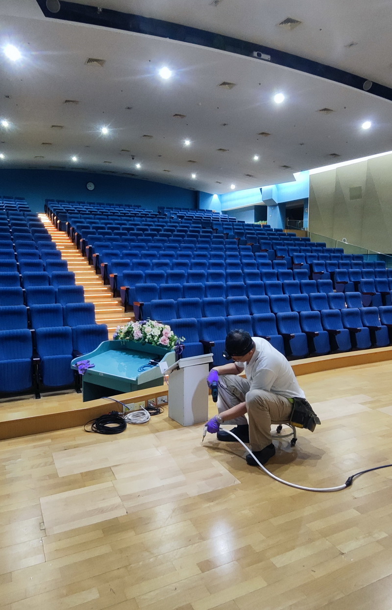 區域醫院大型會議室.除白蟻經由上下樓層水泥縫隙管路交叉入侵破壞.不容小看白蟻破壞力及穿透性.台南除白蟻推薦.除白蟻