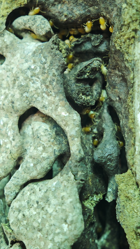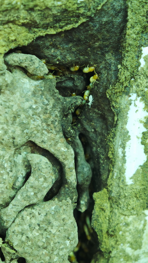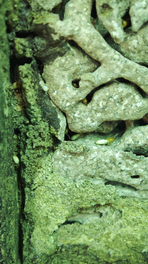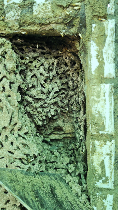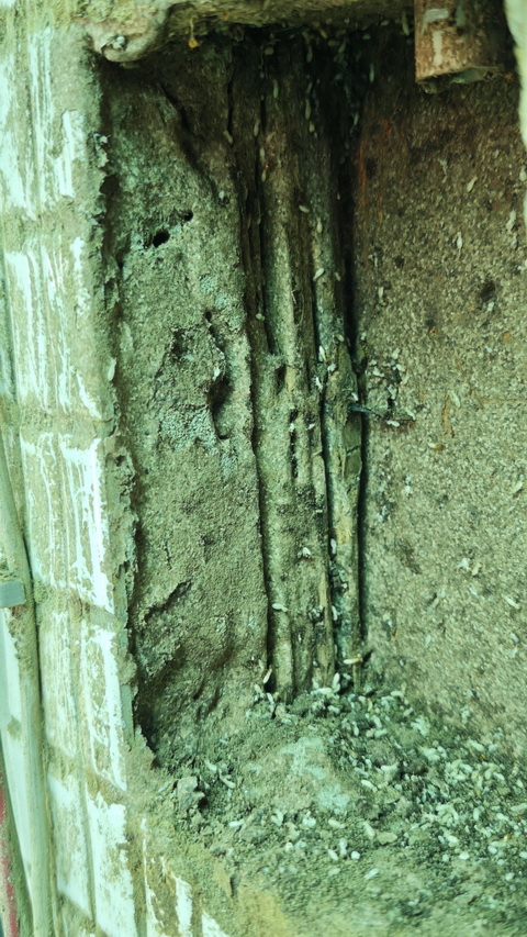 一般透天住家型白蟻由電線管路水泥牆壁縫隙入侵繁殖破壞,此案例為隔壁鄰居有白蟻互相入侵感染..