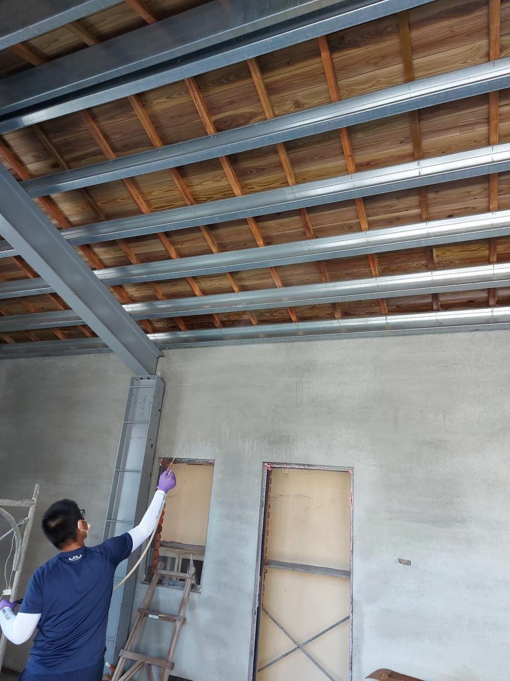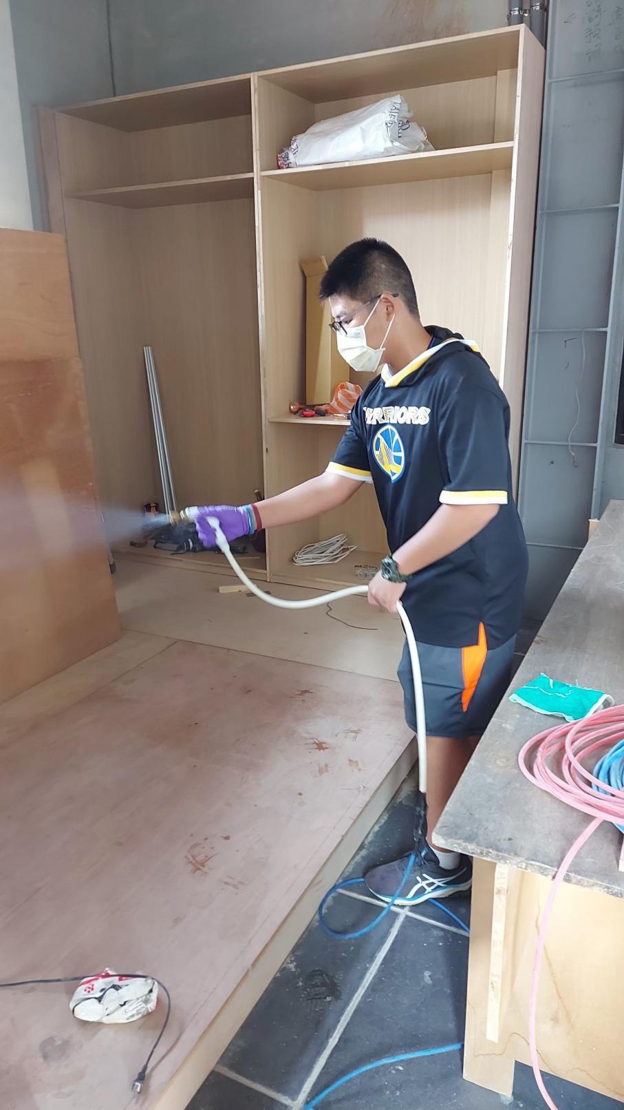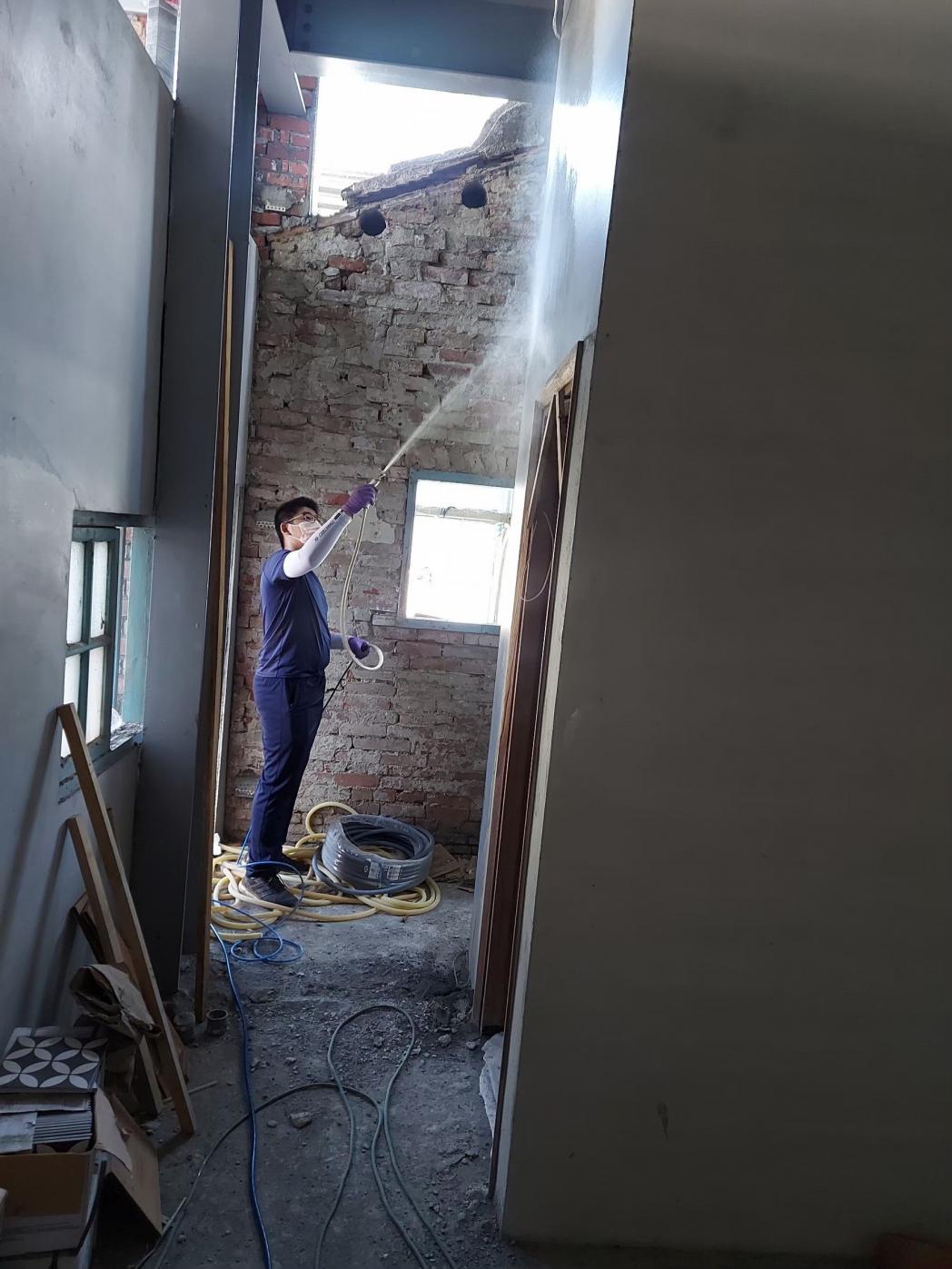 安平古堡屬於舊城區.白蟻本來就屬於高危險區域.加上隔壁間有發現白蟻痕跡.未做完整標準式白蟻除蟲防治.設計師翻修自己要使用的工作室特別強調要做最完整的施工方式.本案件依裸屋噴塗 泥作 木作 最後修補 總共進場施工五次.真的是最完整的防護..特選用拜耳 特滅多白蟻藥劑再加重20%比例